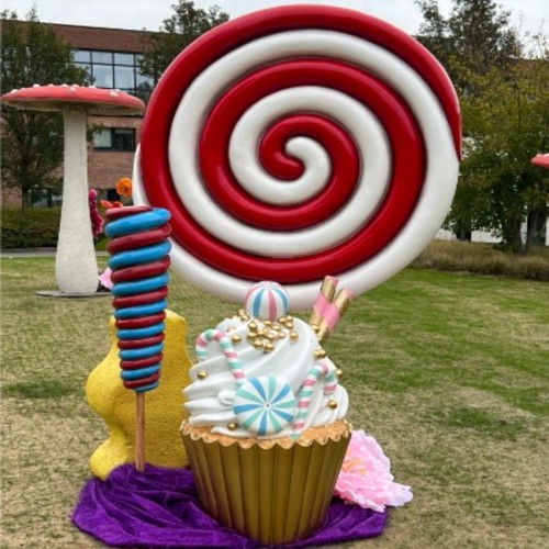Agence de décoration événementielle à Lille et Paris, La Sceno vous propose à la location une sucette ronde géante rouge et blanche, décor idéal pour un thème Noël, Gourmand ou Charlie et la Chocolaterie.