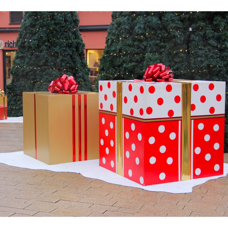 Agence de décoration événementielle à Lille et Paris, La Sceno vous propose à la location un cadeau XXL en bois rouge et or pour vos décors de Noël.