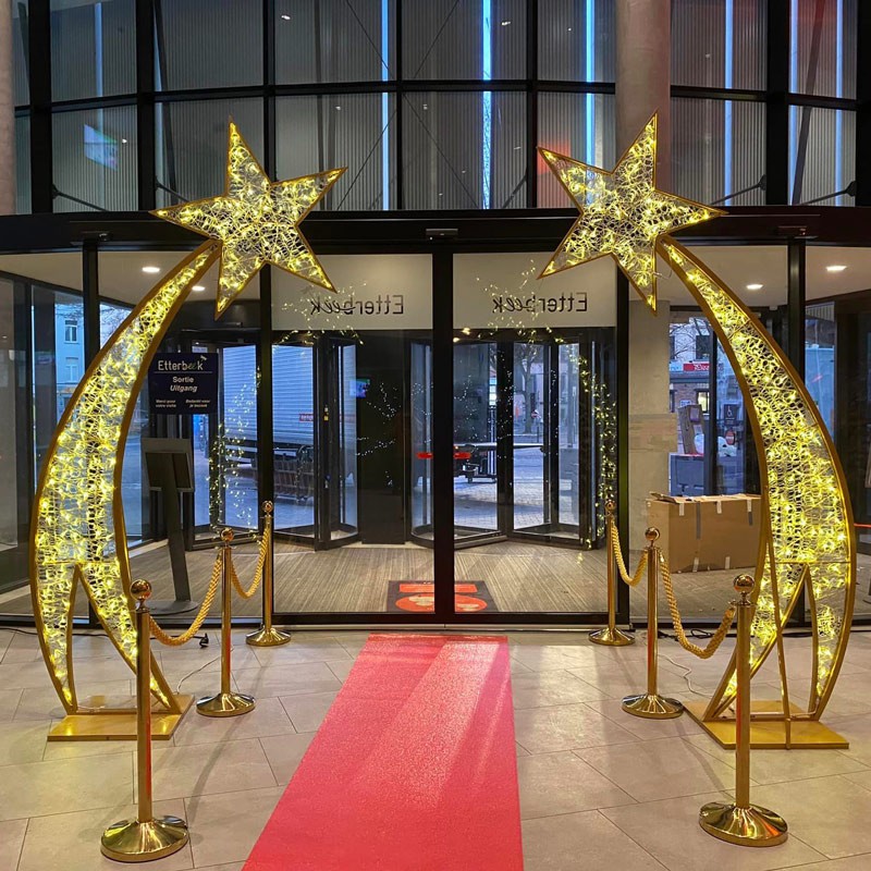 Agence de décoration événementielle à Lille et Paris, La Sceno vous propose à la location une étoile filante lumineuse pour vos décors de Noël et de fin d'année.