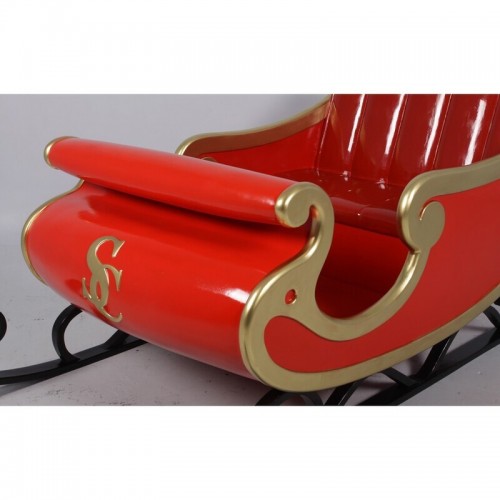 Agence de décoration événementielle à Lille et Paris, La Sceno vous propose à la location un traineau de Père Noël rouge et or en résine pour vos fêtes de Noël.